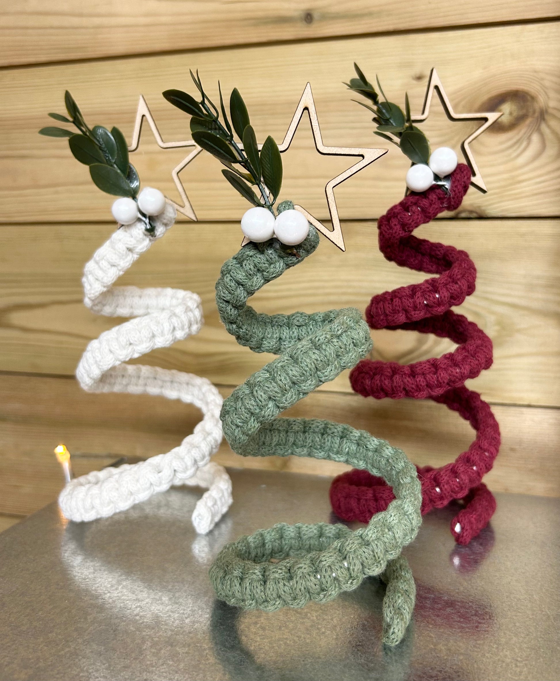 These super cute macrame spiral Christmas trees will look fab in any home, can be a Christmas table decoration, tree topper or left standing on any mantel piece, sideboard or make great centre piece on your dining table.
